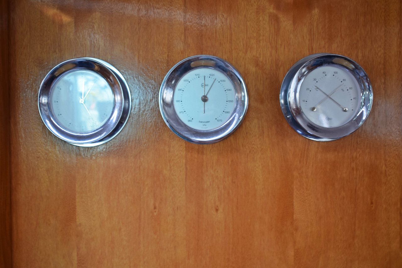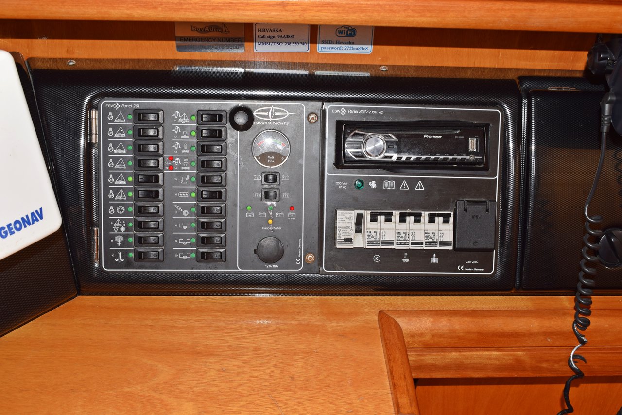 Autopilot, bimini top, GPS, gas, sprayhood, dinghy, bed linen, no bathing platform:
