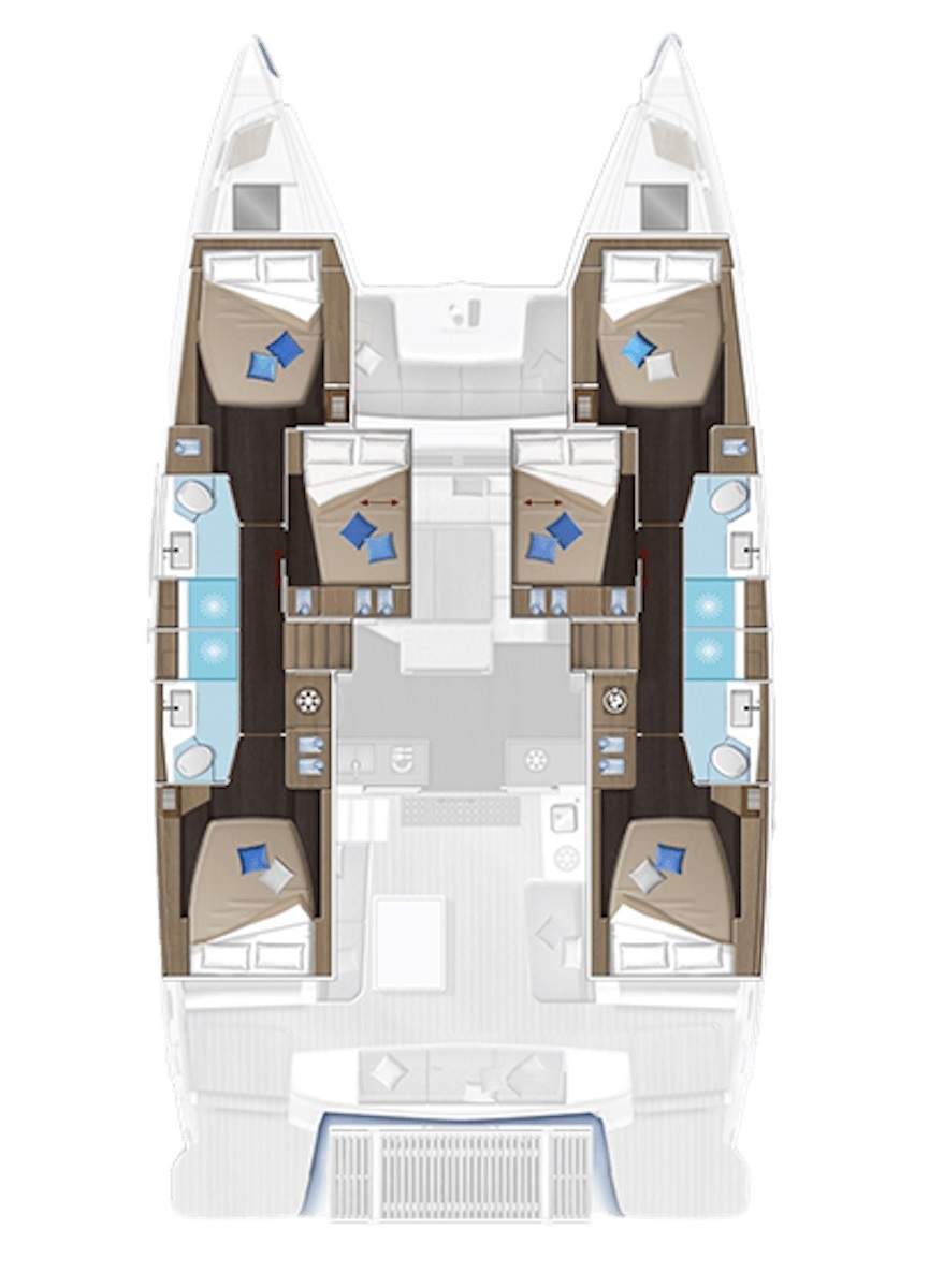 includes: Tourist tax and final cleaning of the catamaran outside/inside, gas for cooking, underwater inspection, crew list, bed linen, 2 pc. towels/person, 1 pc. beach towel/person, 1 pc. bath mat/bathroom, 1 pc. blanket/person, bed linen and towels laundry, toilet paper and liquid soap in the bathrooms, coffee capsules, sponge for dishes, dishwashing detergents, big and small trash bags, dish towels and paper towels in the kitchen. Also include Internet 4G LTE (data FUP 250 GB).